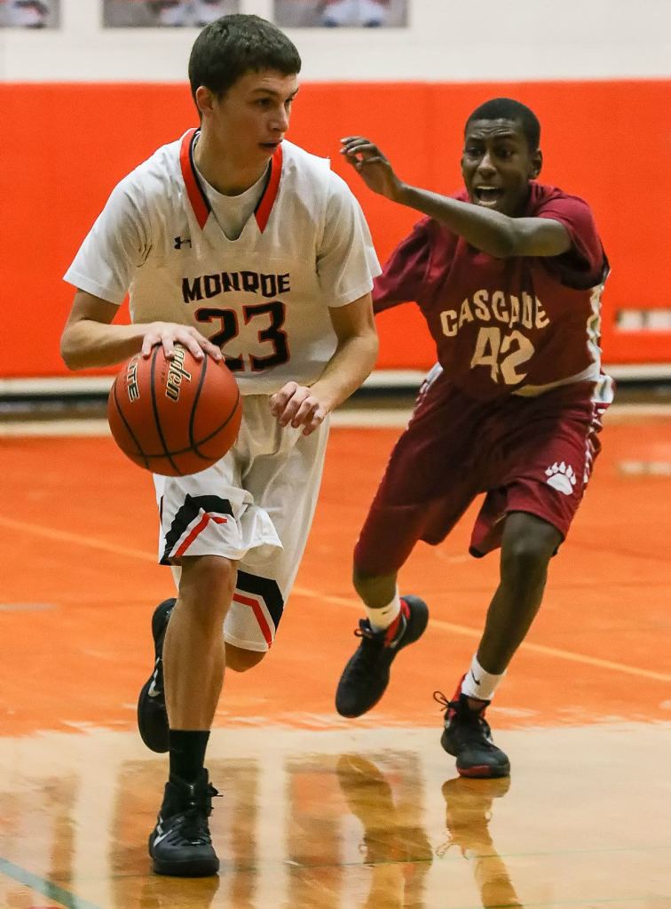 Cascade—D’Andre Bryant 12, Trevon Blackmon 9, Briar Nguyen 7, Musa Baldeh 5, Charles Coleman 4, Dezmond Tyler-Davis 3, Topaz Kiptabut 2, Muhammed Kolly 1, Nicholas Klemp 0, Donelle Meriwether 0, Dauntay Woods 0. Monroe—Trenton Newhouse 22, Spencer Davidson 14, Colby Kyle 13, Justin Folz 4, Joshua Jerome 2, Isaiah Cole 2, JD Merwin 0, JJ Jerome 0.
