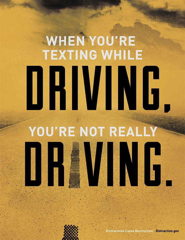 A promotional poster warning about the dangers of texting while driving from Distraction.gov, the U.S. Government website for Distracted Driving awareness and information. (distraction.gov image)