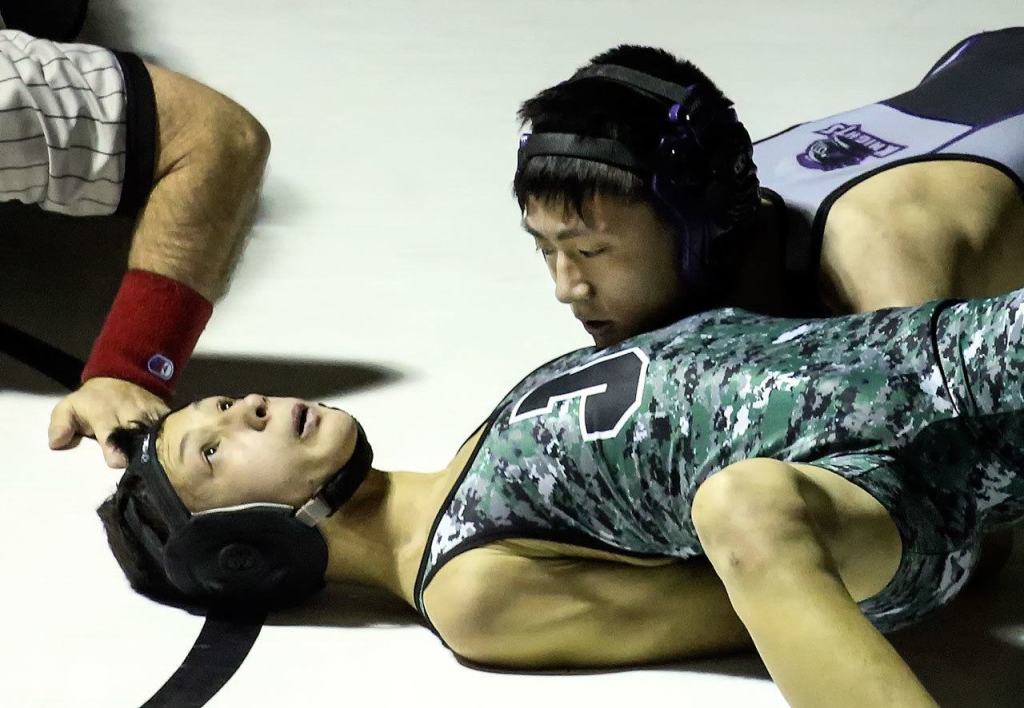 A key heavyweight win by Kamiak’s Austin Pomada and back-to-back victories from the Knights’ Richard Chung (106) and Peter Kim (113) extended Kamiak’s lead to 42-17.