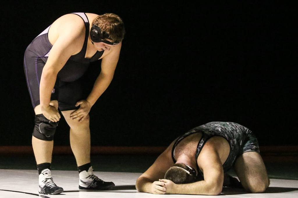 Although Jackson had no chance of winning when the 126-pound match came around, Timberwolves freshman Matt Kastelle produce the performance of the night, pinning Kamiak’s Sean Sohlberg in the final seconds after trailing by as many as eight points.