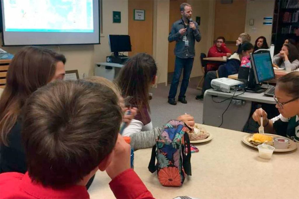 Once a month, over 150 students at Evergreen Middle School in Everett skip the cafeteria and instead eat their lunch in the library as they listen to a local speaker who works in a field that uses science, technology, engineering or math.