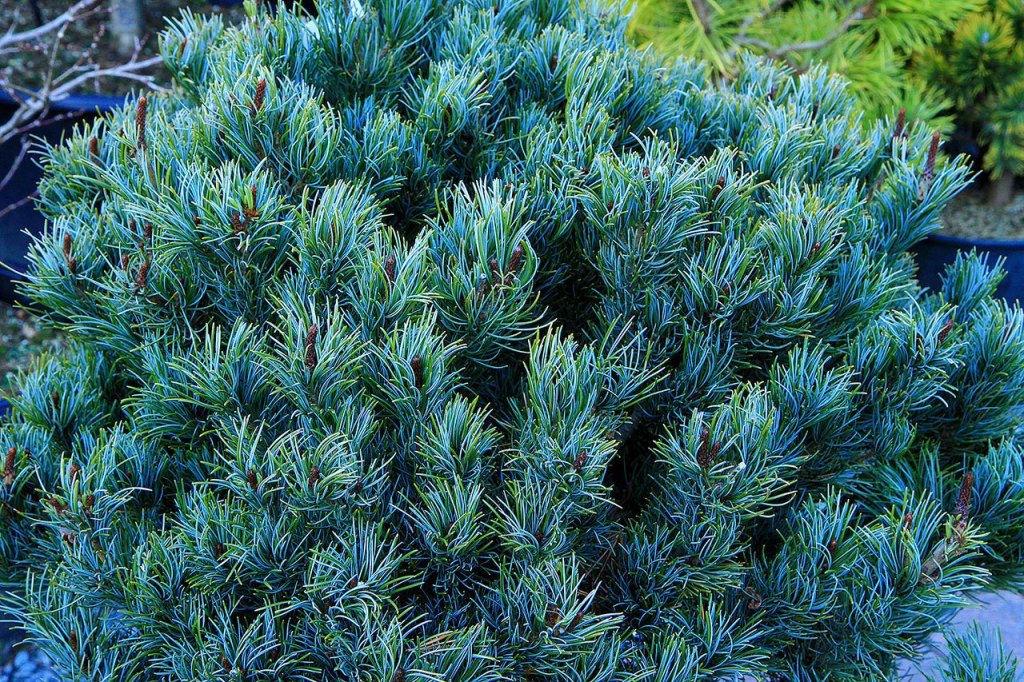 For an intriguing mix of blue and green needles, try Pinus parviflora “Blue Lou”( also known as Blue Lou Japanese white pine). Blue Lou is a very slow grower, becoming a dense, broad mound at 3 feet tall by 4 feet wide in 10 years.