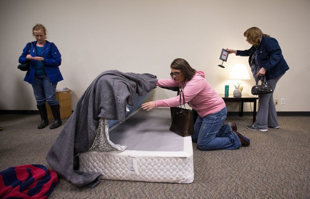 Volunteers set up models of two bedrooms, a teen boy’s and girl’s, in Weston High School. They hid drugs and the tools to use them in places police say are common among young users.