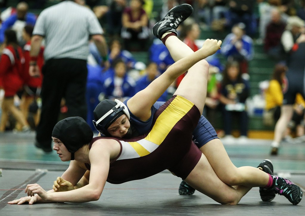 100—Kenzie Cormier (Enumclaw) maj. dec. Alexandra Puzon (Enumclaw) 10-0. Local placer—Diana Cantini, Kamiak, T-5th. 105—*Leah Olson (Sedro-Woolley) dec. Anabella Garcia (Federal Way) 3-1. 110—Anjilia Sumandig (Federal Way) maj. dec. Gabriella Mata (Mt. Baker) 11-2. Local placer—Jordynn Mani, Arlington, T-5th. 115—Phoenix Dubose (Yelm) won by injury default. Local placer—Kara Underhill, Everett, T-3rd. 120—*Brooklyn Bartelson (Puyallup) pinned Korbyn Cadle (Mt. Baker) 4:38. Local placer—Cassidy O’Hara, Lakewood, T-5th. 125—*Brenda Reyna (Mount Vernon) pinned Lynette Samano (Nooksack Valley) :33. 130—Joessie Gonzales (Snohomish) dec. Carly Smith (Yelm) 6-2. Local placer—Alyssa Moore, Shorecrest, T-5th. 135—Emma Bruntil (Mt. Baker) pinned Nadia Medvinsky (Redmond) 1:17. Local placer—Olivia Poulten, Lakewood, T-5th. 140—Kiley Hubby (Glacier Peak) maj. dec. Ariana Zemke, Yelm 12-3. Local placers—Bethany Fisher, Lakewood, T-5th; J’lanaye Julien, Arlington, T-5th. 145—Kali Spady (Lynden) dec. Karrah Smith (Granite Falls) 13-7. Local placers—Yahira Souza, Edmonds-Woodway, T-5th; Maggie Kermoade, Everett, T-5th. 155—Ally de la Cruz (Kamiak) dec. Jenna Doll (Hoquiam) 8-2. 170—Tally Thomas (Federal Way) pinned Jasmine Welch (Yelm) 1:20. 190—Meredith Bain (Oak Harbor) dec. Ashley Kile (Yelm) 7-0. Local placer—Destinee Williams, Arlington, T-5th. 235—Jailee Mercedes (Stanwood) pinned Aarianna Wooten (Stadium) 1:16. Local placers—Vatoria Keyes, Edmonds-Woodway, T-3rd; Irelynne Monaghan, Snohomish, T-5th.