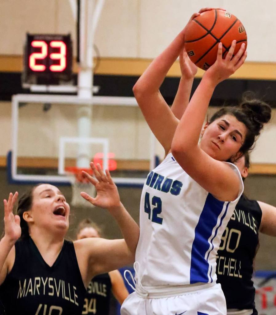 It’s not often Shelley gets the opportunity to let one fly from beyond the arc, but with Marysville Getchell staging an early fourth-quarter comeback, Shelley, trailing the play, received a pass at the top of the arc and without hesitation knocked down a 3 to quash the Chargers’ momentum.