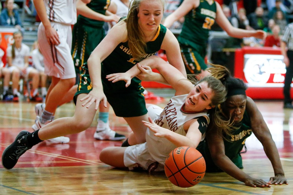 For fans who like free throws, this was a good one to watch. The Spartans were whistled for 21 fouls, sending Shorecrest to the line for 29 attempts, with the Scots converting 17. Shorecrest committed 18 fouls and Stanwood was 14-for-22 at the stripe.