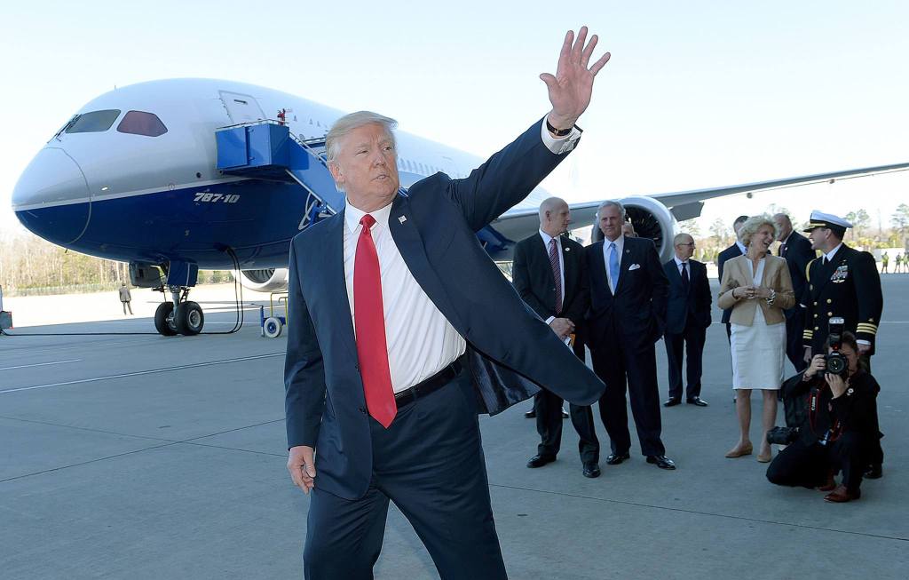 NORTH CHARLESTON, S.C. — When President Donald Trump took the stage here Friday to mark the launch of Boeing’s newest aircraft, it was a scene reminiscent of his airplane hanger rallies during the presidential campaign.