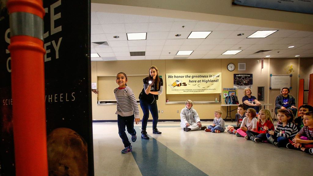 LAKE STEVENS — Visitors from the Pacific Science Center surprised students at Highland Elementary School with a trip to space Thursday.