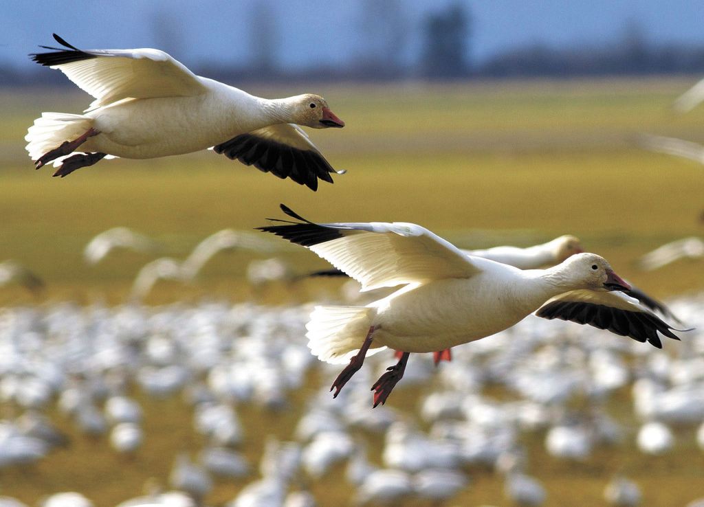 Some birds, like eagles and woodpeckers, are here year-round; others, like osprey and some hummingbirds, leave for warmer climates; and a few, like snow geese and swans, spend the winter here before heading back north to raise their young.