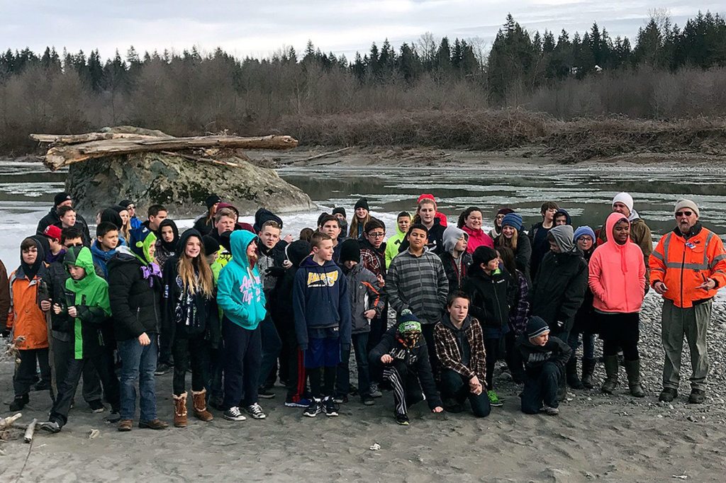 Post Middle students explore frozen floodplain