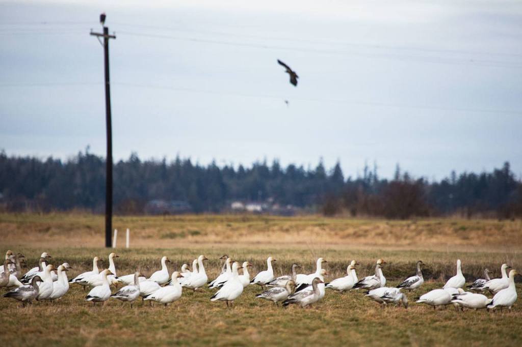 The Snow Goose Festival celebrates the flocks of large white birds that migrate through the area, filling fields by the hundreds this time of year in parts of Western Washington, including Stanwood. Though the festival is cancelled, the geese have been around this winter for bird watchers to see.