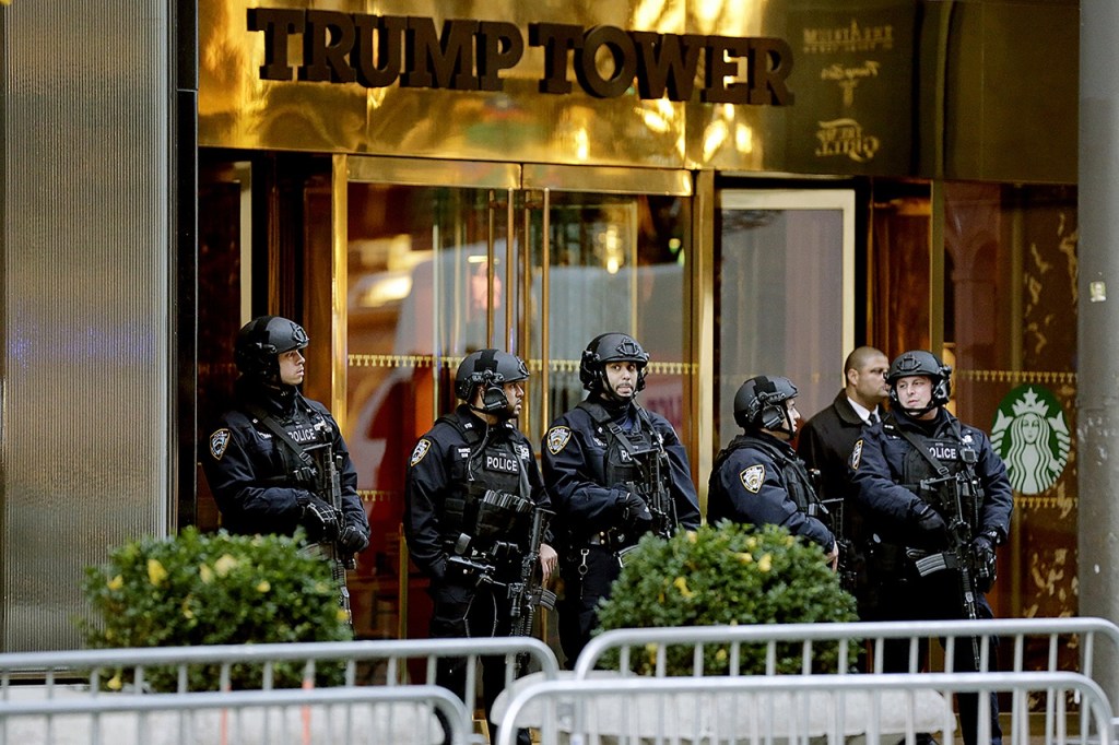He says it cost about $24 million to guard the Trumps and Trump Tower during the 2½ months between Election Day and Inauguration Day.