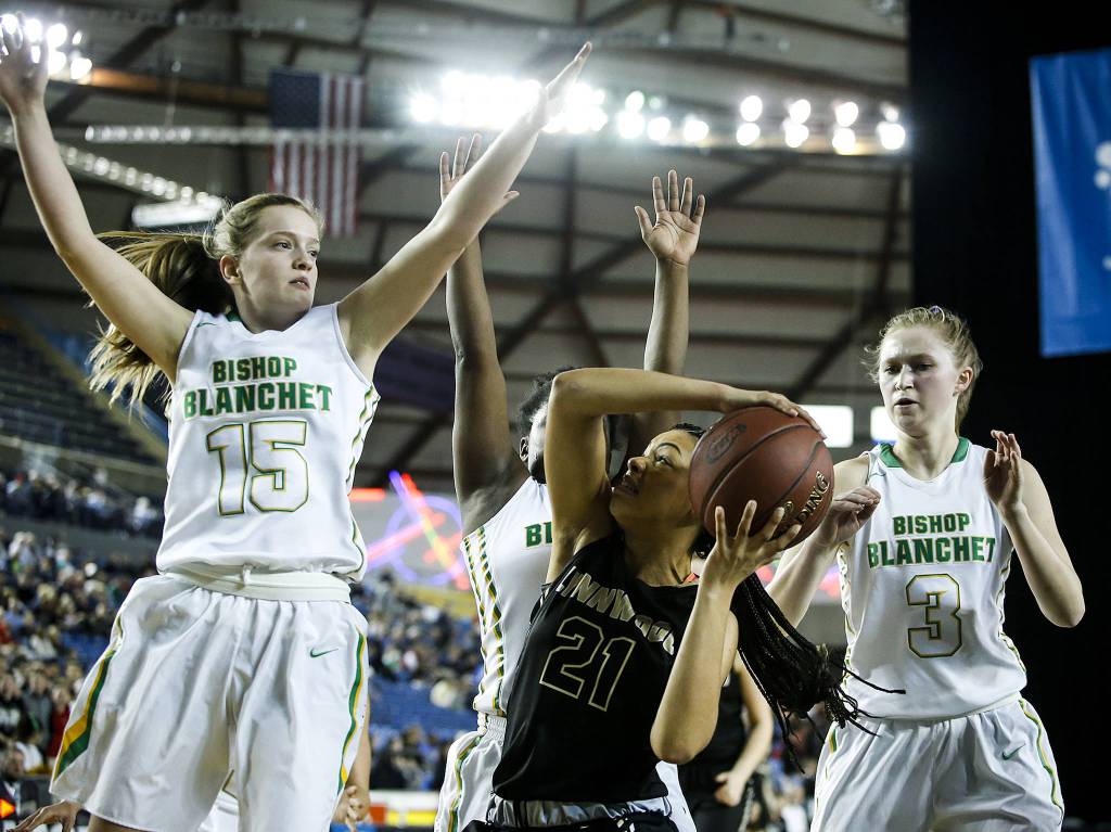 “Lynnwood put up a good fight. They’re a good team,” said Bishop Blanchet forward Jadyn Bush, who scored 22 points. “We just had to keep our composure down the stretch and do what we talked about — be in the right spot at the right time.”