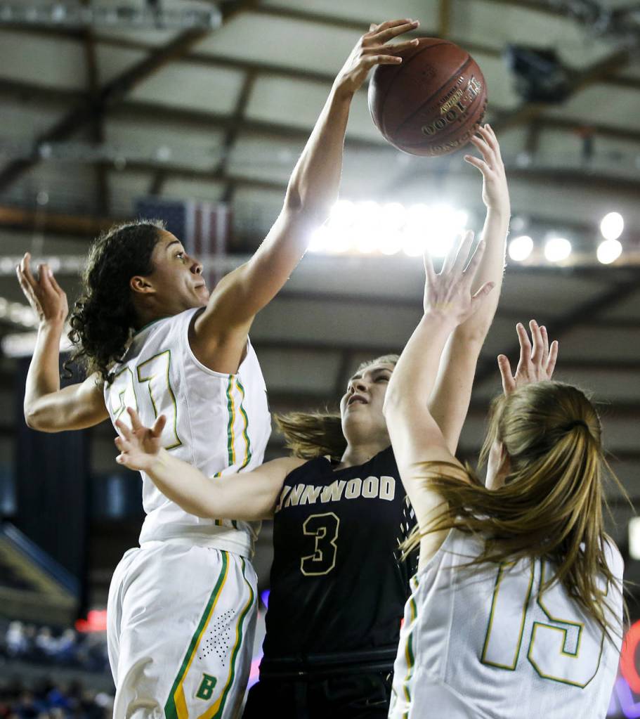“We stayed poised,” Braves coach Brett Hecko said. “We’ve had close games before. It’s been a grind ever since the Metro playoffs. We’re battle-tested. We knew Lynnwood would come at us with all of their pressure. Kelsey Rogers is a load to handle in the post, and Kaprice Boston hit some big shots.”