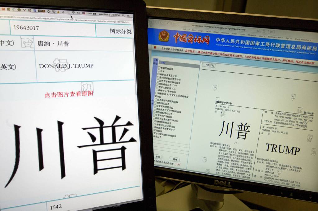 China’s State Administration for Industry and Commerce, which oversees the Trademark Office, and Trump Organization general counsel Alan Garten did not immediately respond to requests for comment Wednesday.
