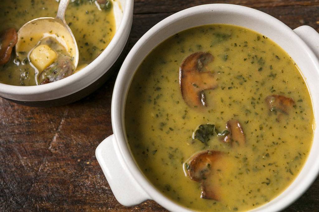 Caldo verde with mushrooms