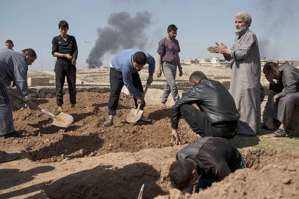 Relatives and friends bury the body of Khadeer Hassan, who was killed during fighting between Iraqi security forces and Islamic State militants, on the western side of Mosul, Iraq, on Saturday, March 25. (AP Photo/Felipe Dana)