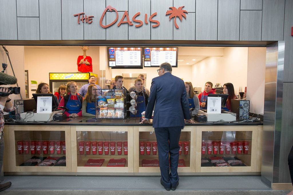 Gov. Inslee visits Marysville Pilchuck to see new cafeteria