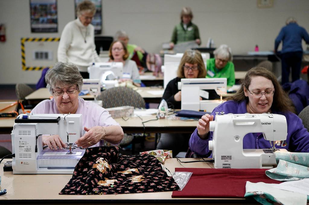 The active membership is about 50 volunteers, Harris said. At McCollum Park, 21 people came, but a few took part remotely sewing at home. Typically about 15 people show up at the monthly sessions.
