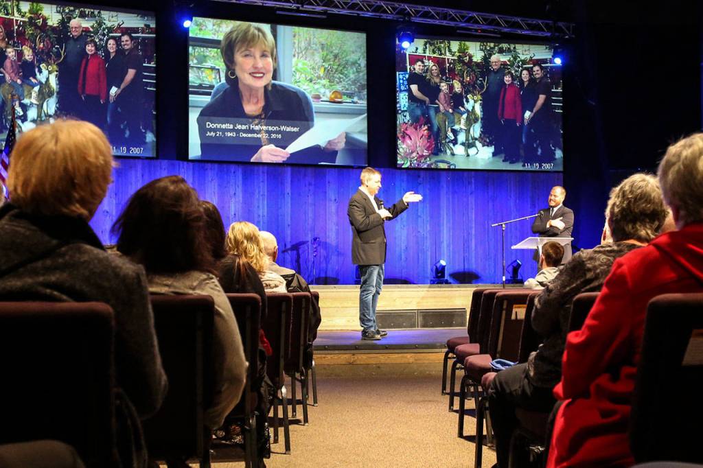 Matt Walser shares memories of his mother, Donnetta Walser, during the celebration. (Kevin Clark / The Herald)