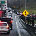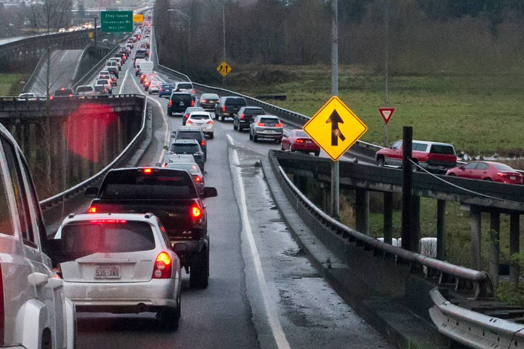 Vehicles from the three well-traveled arteries are funneled onto two lanes at the trestle in order to cross soggy slough lands and the Snohomish River toward Everett and I-5. Drivers spend about 15 minutes on average trying to work through the clog during the height of the morning commute.