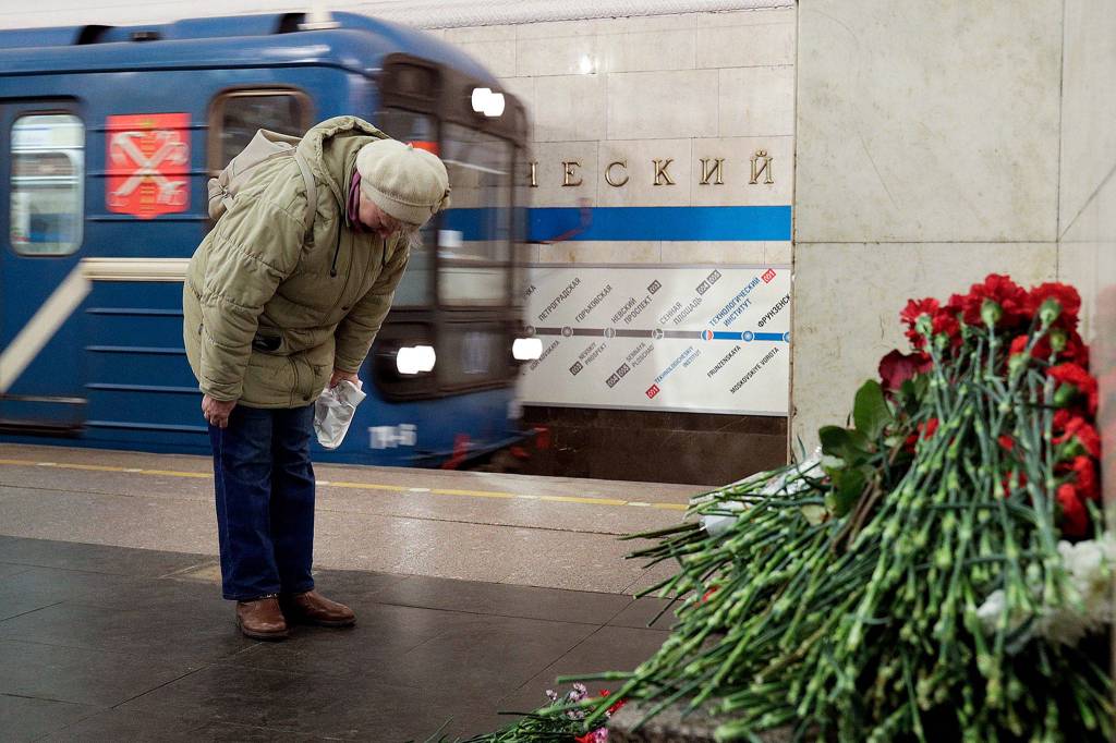 There was no immediate claim of responsibility for the Monday afternoon attack, which came while President Vladimir Putin was visiting the city, Russia’s second biggest and Putin’s hometown.