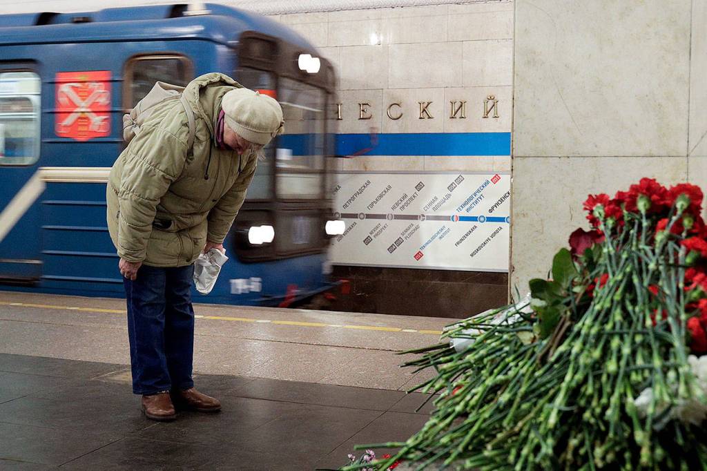 Oleg Alexeyev, 53, who trains sniffer dogs for the police, went to the Technological Institute station Tuesday morning to lay flowers in memory of those who died nearby.
