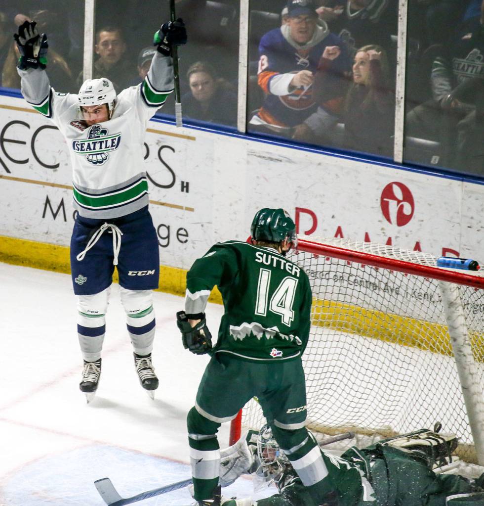 Keegan Kolesar scored two goals and had an assist while Mathew Barzal and Donovan Neuls tallied the other two goals for Seattle.