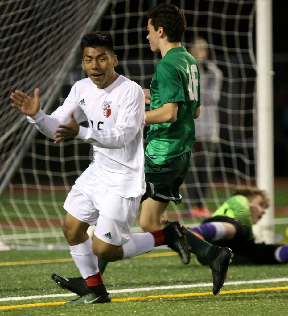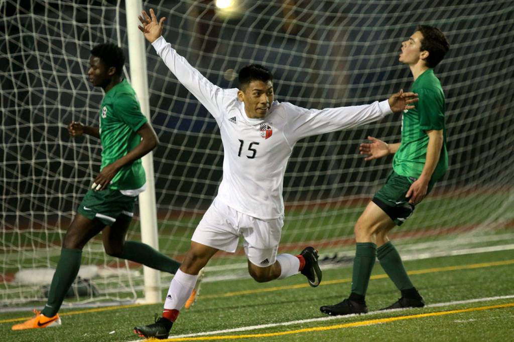 Fairhurst’s first goal came via a header in the 13th minute. Three minutes later, he scored again — with his foot this time — to give Snohomish a 2-0 advantage.