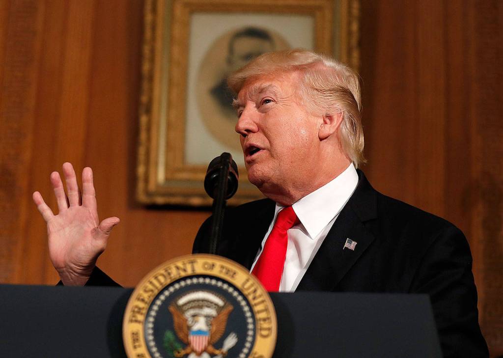 President Donald Trump speaks in Washington on Wednesday. The president is proposing dramatically reducing the taxes paid by corporations big and small in an overhaul his administration says will spur economic growth and bring jobs and prosperity to the middle class. (AP Photo/Carolyn Kaster)