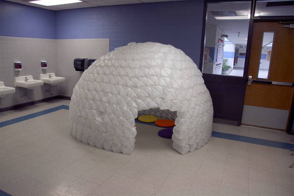 Plastic milk jugs provided students at Dutch Hill Elementary School with a recycling lesson — and an igloo.