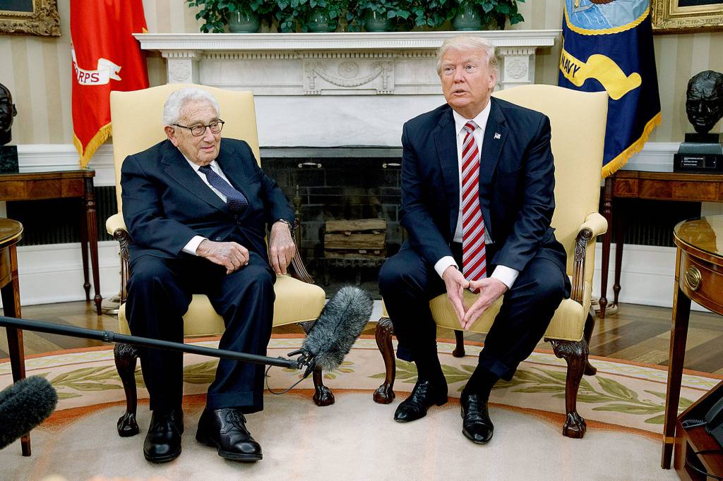 President Donald Trump meets with Dr. Henry Kissinger, former Secretary of State and national security advisor under President Richard Nixon, in the Oval Office of the White House on Wednesday. (AP Photo/Evan Vucci)
