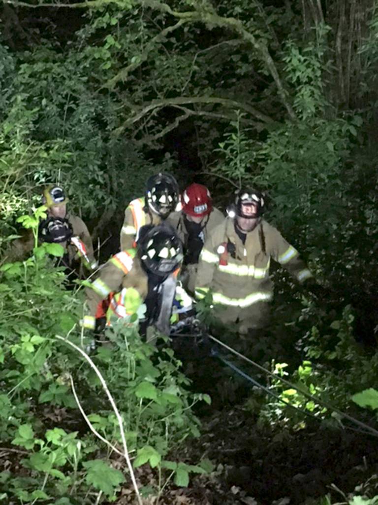 He apparently drove his car into a power pole, knocking down electrical wires. He then wandered down an embankment. Rescue crews found him there shortly after 3 a.m., according to Snohomish County Fire District 7.