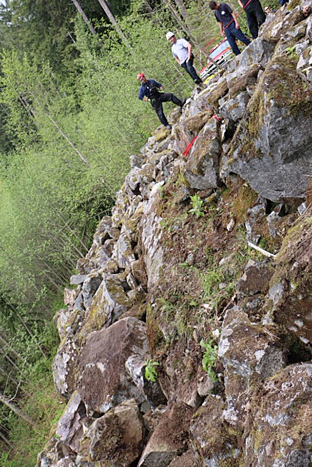 This is the second time this year where rescue crews were called out to help someone who had been trapped under a rock while climbing, according to Heather Chadwick, a spokeswoman with Snohomish County Fire District 7.