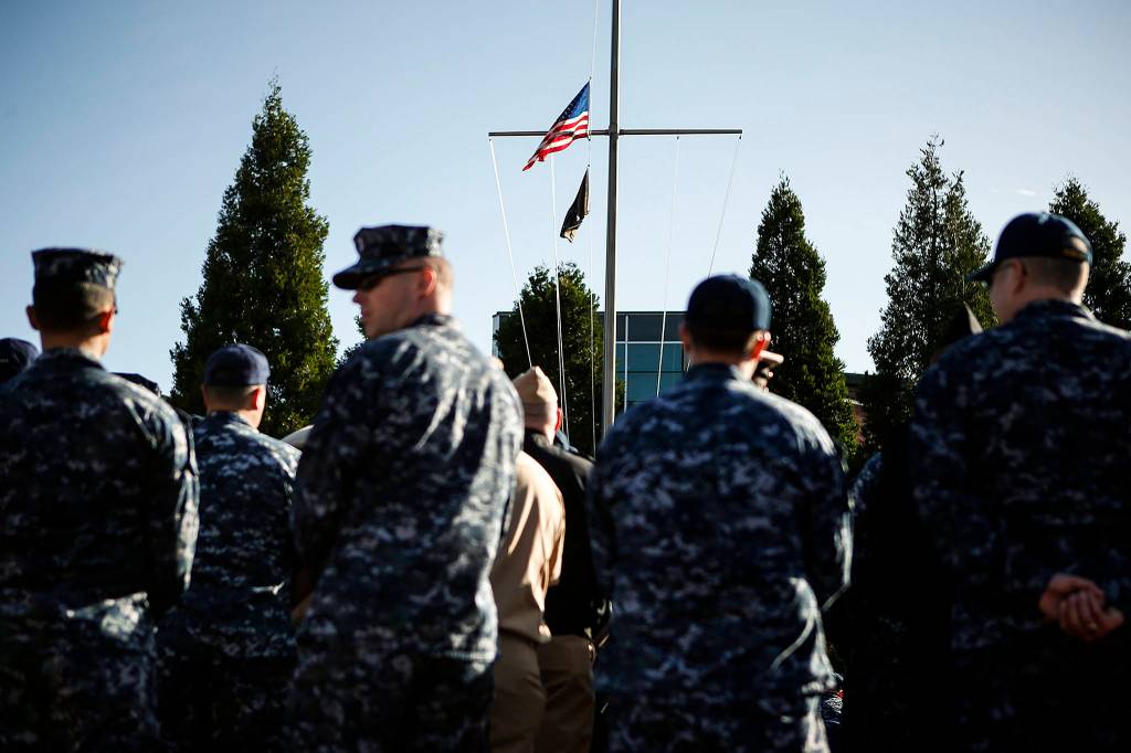 “The half-staff position remembers the more than 1 million men and women who gave their lives,” said Petty Officer 1st Class Roger Scott, who was the master of ceremonies.