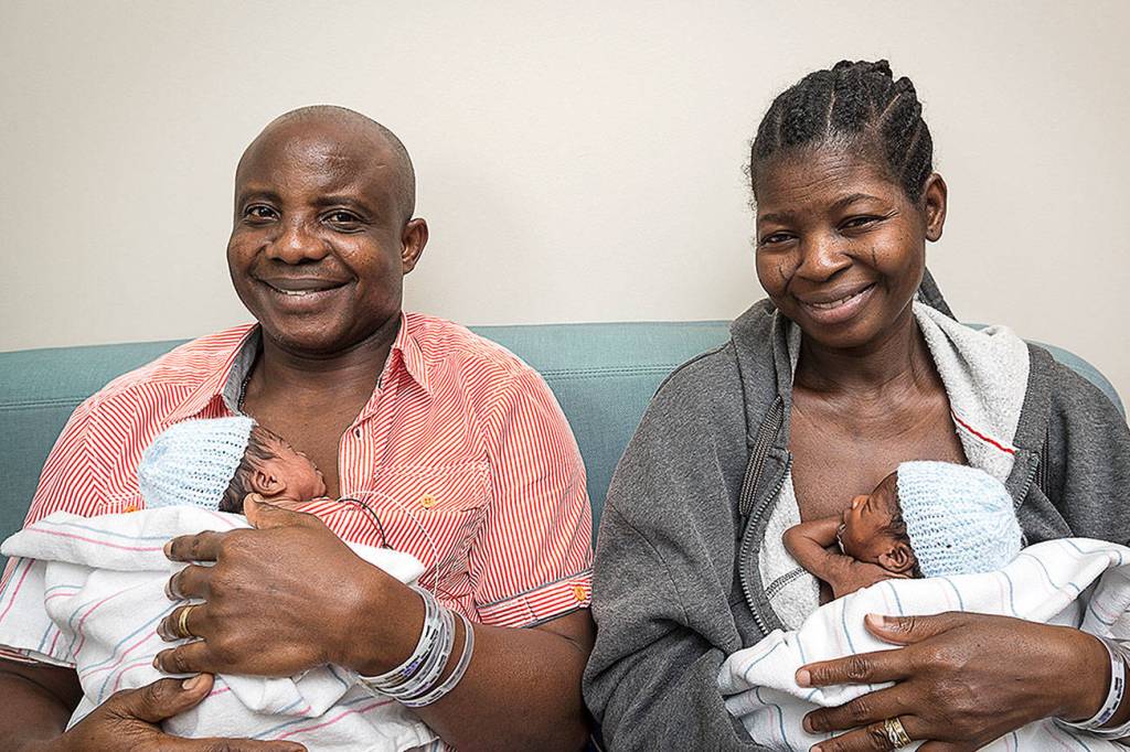 The couple, natives of western Nigeria, had tried to conceive a child for nearly two decades. They were described as being “overcome with joy when they saw four heartbeats” at their first ultrasound in November, officials said.