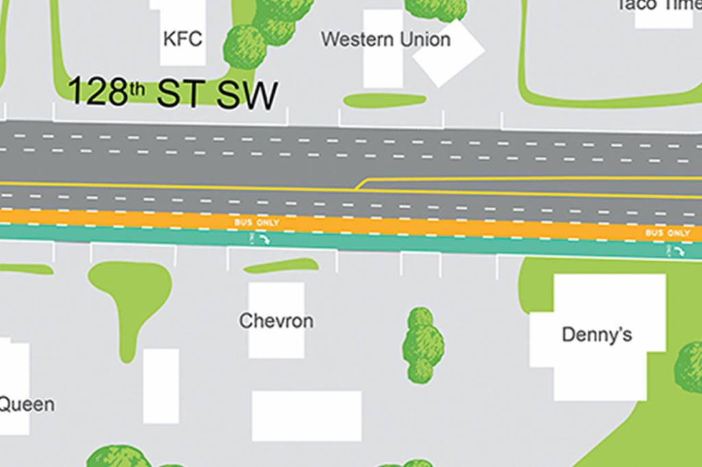 So the transit agency is adding bus lanes in both directions on 128th Street approaching the overpass.