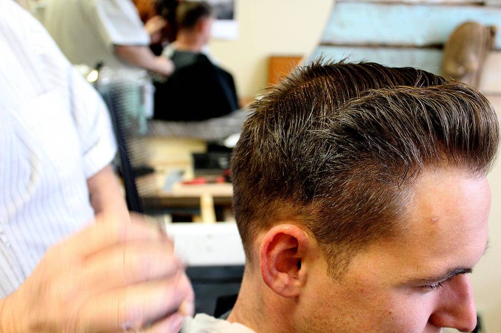 “The vintage hair styles from the 1940s are in,” Bell said. “It’s a classic look, side parted, well groomed and trimmed around the edges. But I do everything, wild to mild.” (Including kids and women if they’re needing an undercut.)