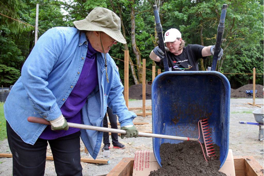 LAKE STEVENS — It took 16 volunteers, 2,430 cubic feet of donated dirt and a busy Saturday afternoon to get the garden beds ready for the season.
