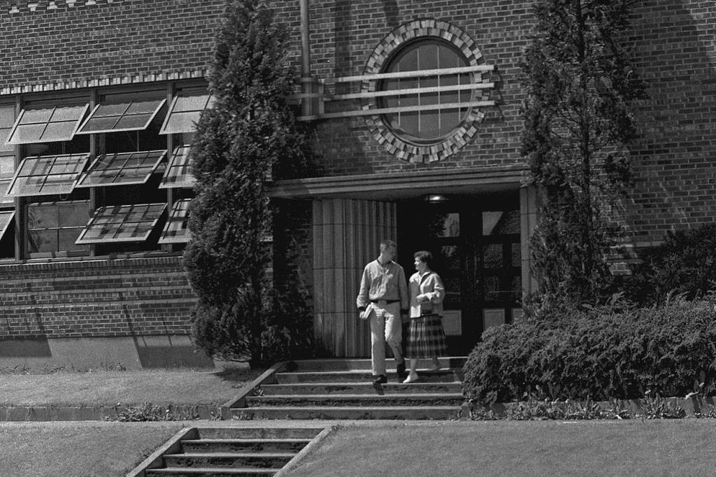 Olson, vice president of college advancement at what is now Everett Community College, was drawn to the image of a young man and woman walking down the steps near the entrance to the former Lincoln Elementary School building.