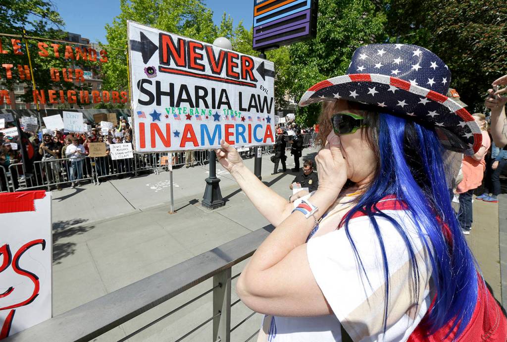 Anti-Islamic law rallies draw counter-protests in Seattle