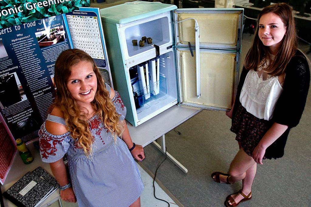 The transformation of an old refrigerator into a hydroponic garden was a year-long project, part of the engineering and design course at Lake Stevens High School. The friends have been in engineering classes since they were in ninth grade. Both plan to continue with those studies.