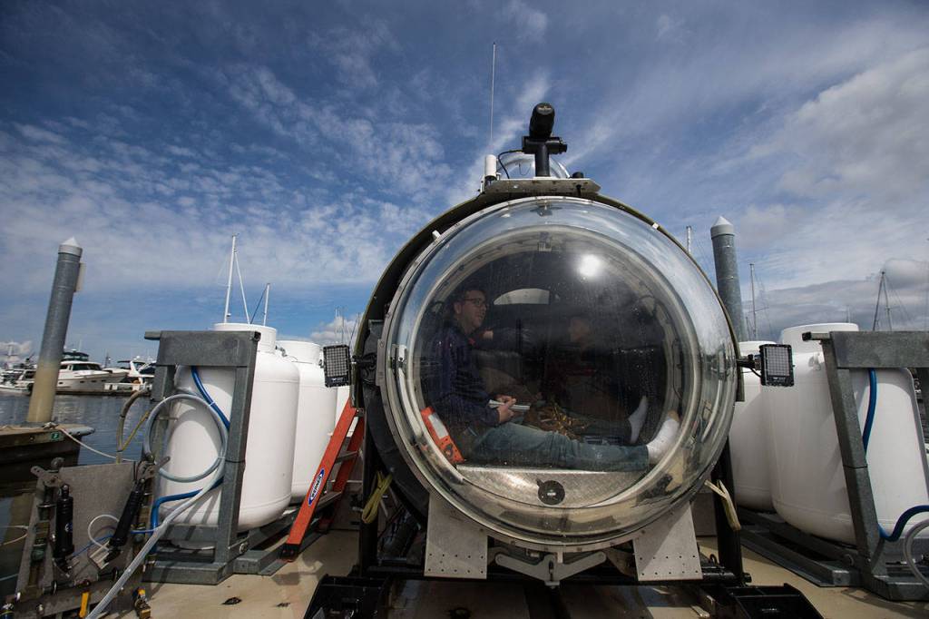 In 2014, the company had its best-known passenger, hip hop artist Ben Haggerty, or Macklemore, as he is better known. The Seattle native tagged along with the crew of OceanGate’s first sub, Antipodes, on a dive in Puget Sound to find sixgill sharks. The voyage was filmed for the Discovery Channel’s “Shark Week” series.