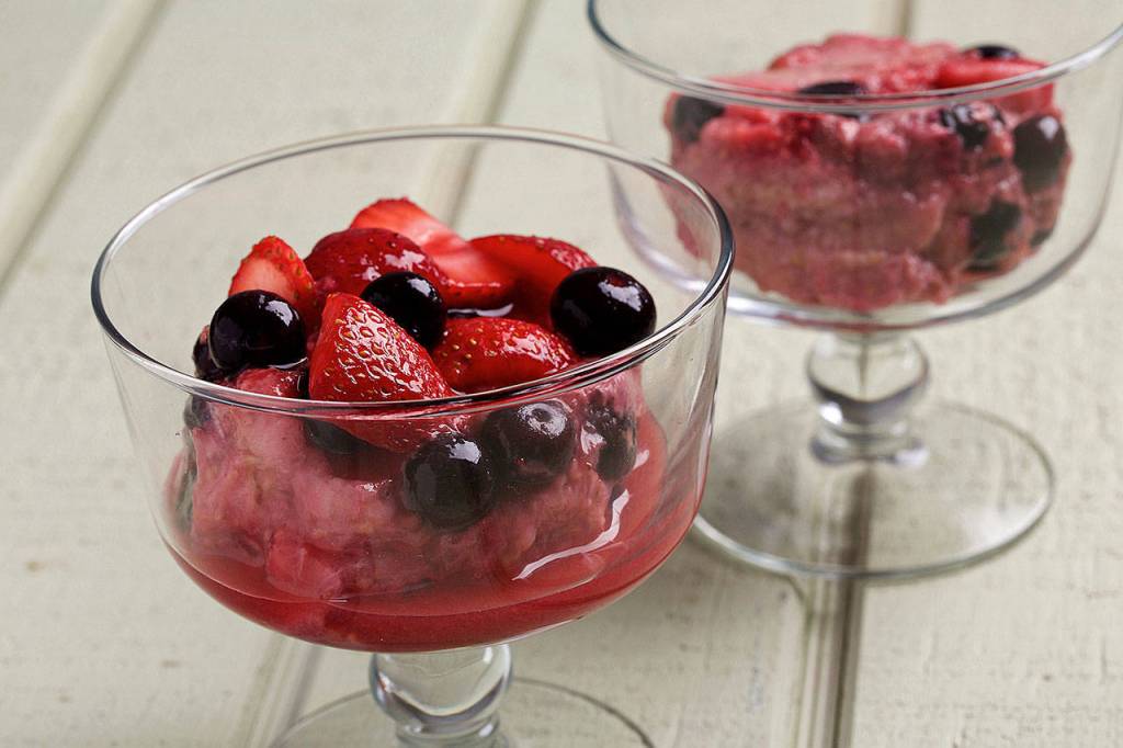 These British puddings are made with summer berries and sweetened with bananas and honey. (Photo by Deb Lindsey for The Washington Post)