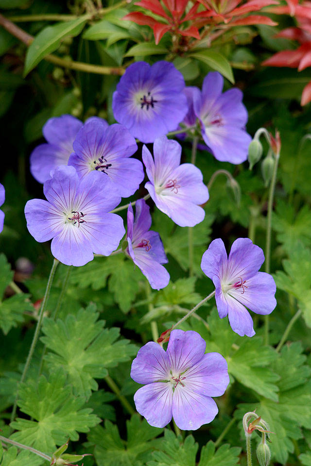 What: Geranium “Gerwat” Rozanne is a relatively new but outstanding hardy geranium. It is noted for its long bloom time — from June until frost in some areas — producing many large, clear blue flowers with white centers. These rise above the leaves to about 15 inches high. The foliage of Rozanne forms a tidy mound to about 10 inches high and 18 inches wide. Use it at the front of a perennial or mixed shrub border, over a large rock wall or between boulders. Grow it in a container with other perennials. Combine it with grasses, sedums, astrantias and eryngiums.