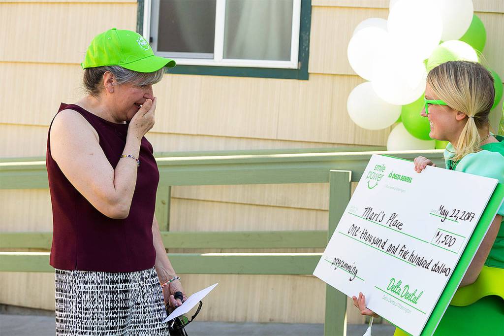Delta Dental of Washington’s Tooth Fairy and Smile Power team paid a surprise visit May 22 to Mari’s Place to present founder Mary Toews with a $1,500 donation, dental supplies, and a $100 Visa gift card to use for herself. The company also donated fairy wings and prize bags to children visiting the nonprofit, which provides arts classes to children from low-income households.