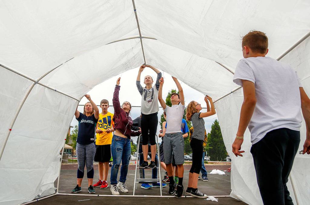 The Arlington Education Foundation provided a grant and businesses donated supplies. Teachers put in hours of work getting ready. Harrington recruited her husband, Seattle police officer Dave Harrington, to help out. He headed up the command post.
