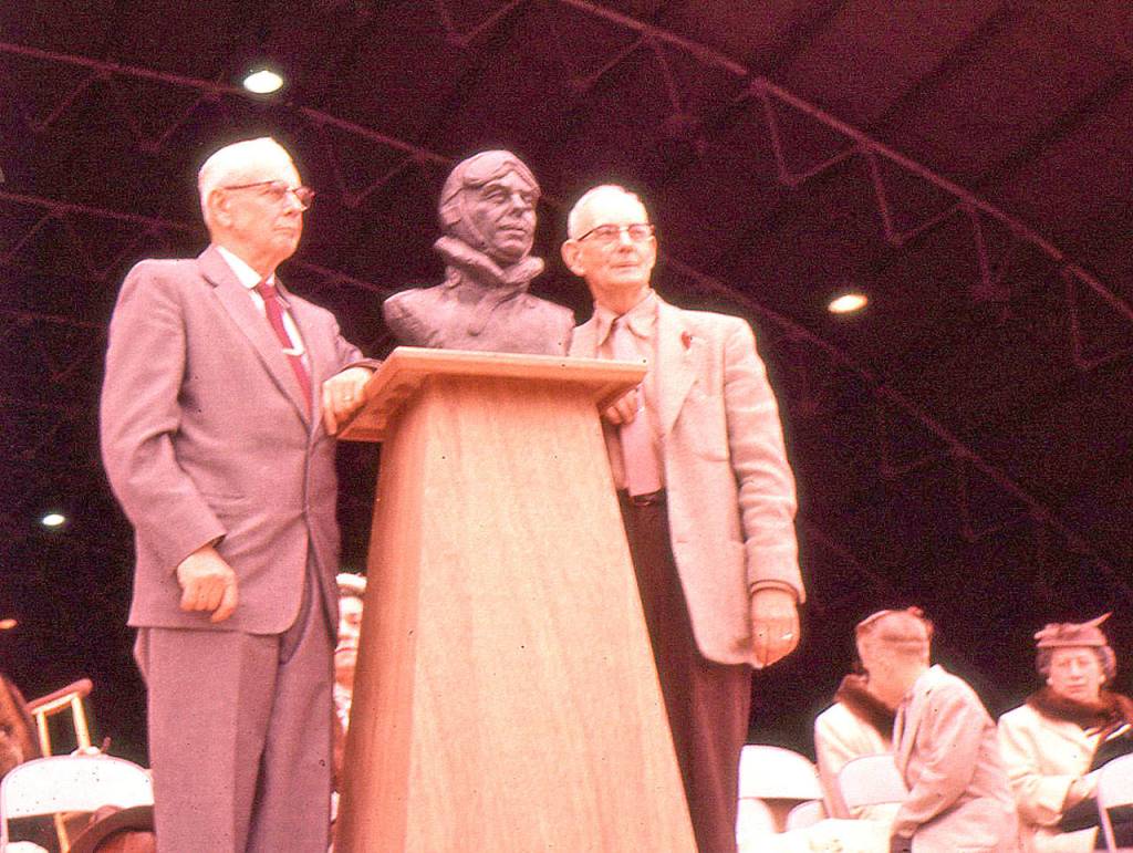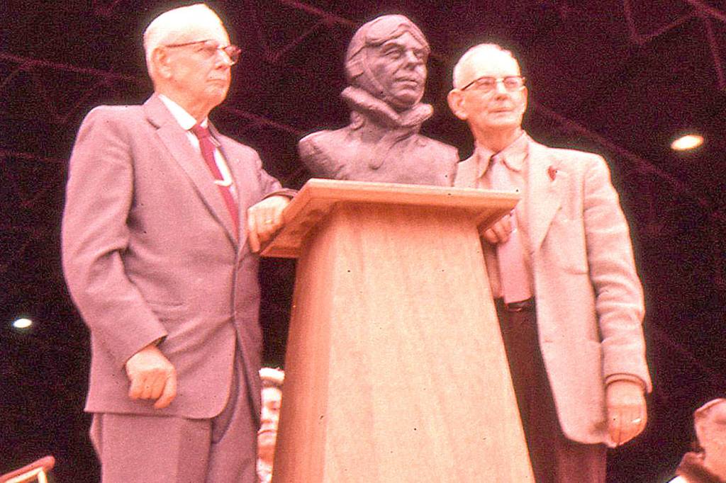 In September 2015, at the Everett High School class of 1965 50th reunion, two classmates, Tom Paine and Nick Moe, shared an interesting story related to their family and a mystery surrounding a tribute to Topliff Paine. The pilot’s two brothers, George Granville Paine and Sumner Emerson Paine were their grandfathers. George, Everett Water Department superintendent, was the grandfather of Tom Paine; Sumner, Everett city engineer, was the grandfather of Nick Moe. In 1955, Sumner’s wife Margaret sculpted a bust of Topliff Paine to be permanently displayed at the Paine Air Force Base officers’ club. Tom and Nick, both about 8 and being the pilot’s closest descendants, were chosen to unveil the sculpture in a dedication ceremony. Family photos recorded the event. A few years later the bust disappeared, most likely as a souvenir for some visiting Air Force unit, probably from California according to Tom and Nick. Their family believes that it ended up in Texas, but its location is still a mystery. Nick has examples of his grandmother’s sculptures but not a copy of the bust of Topliff Paine. Perhaps sometime the sculpture will be returned to Paine Field where it belongs or be replaced by a new monument in his honor.