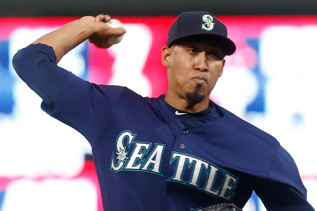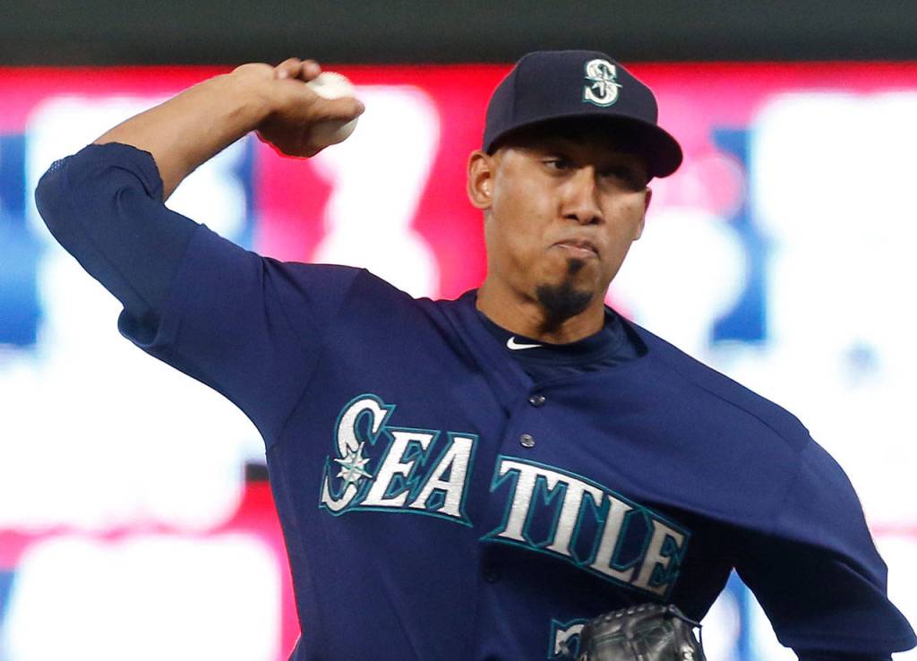 Mariners closer Edwin Diaz throws against the Twins in a game June 14, 2017, in Minneapolis. (AP Photo/Jim Mone)