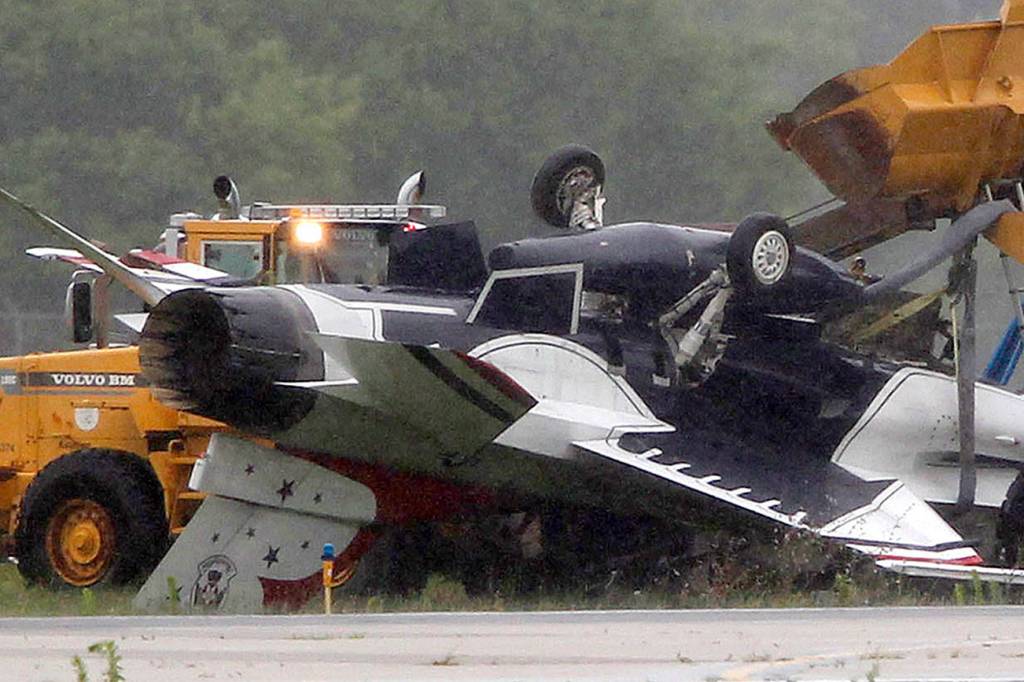 Lt. Col. Jason Heard, commander of the Thunderbirds, said a safety board will determine the cause of the “mishap” that occurred upon landing around 12:30 p.m. Friday at Dayton International Airport. The plane sustained some damage as it overturned, but Heard didn’t provide any details of the damage.